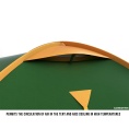 The fine, breathable, and yet durable material of which the inner mosquito net is made makes it possible for air to better circulate around the tent. This ensures great ventilation.