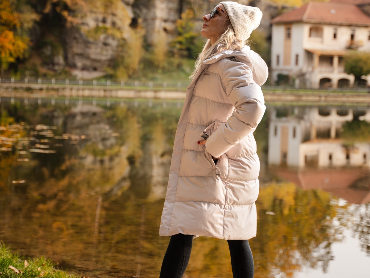 A comfortable women’s hooded jacket with a water-resistant membrane for various outdoor activities around town and in the country.