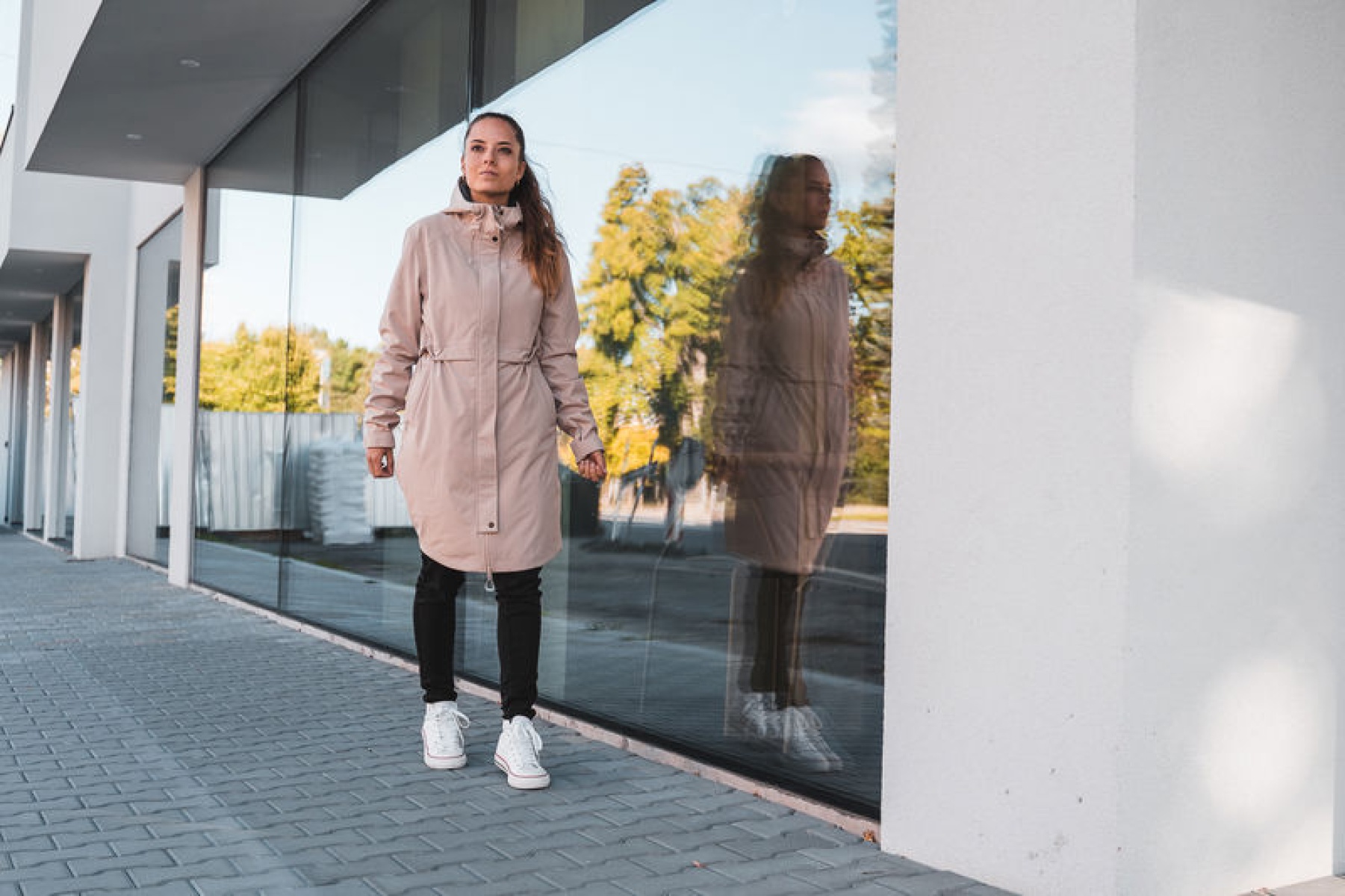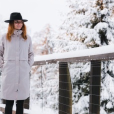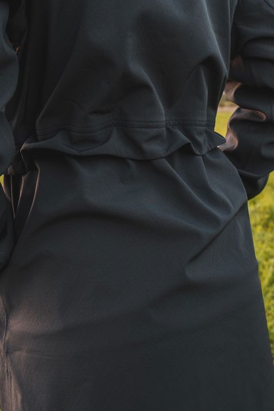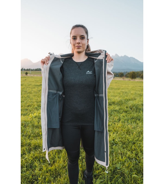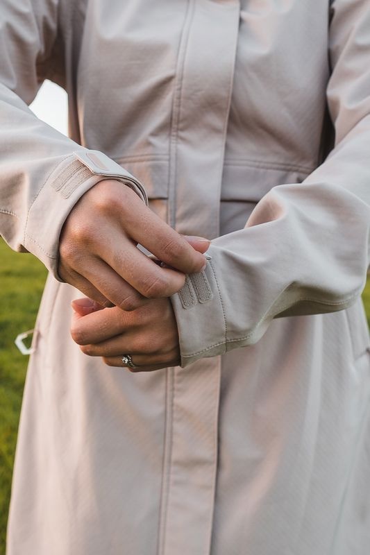 Multipurpose women's coat with drawstring waist wearable all year round for various outdoor activities and hiking.