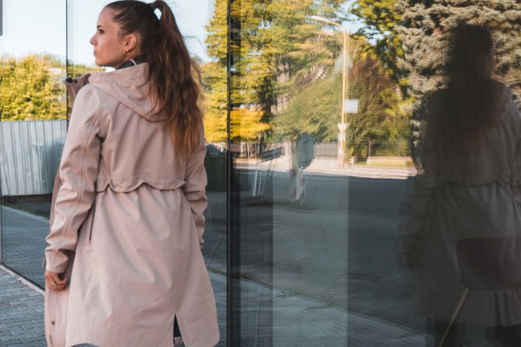 Multipurpose women's coat with drawstring waist wearable all year round for various outdoor activities and hiking.