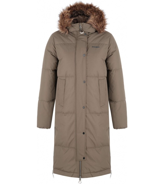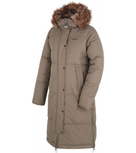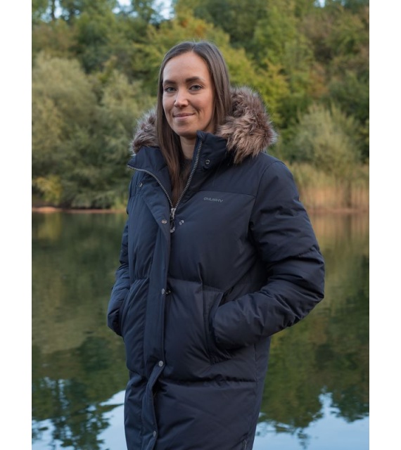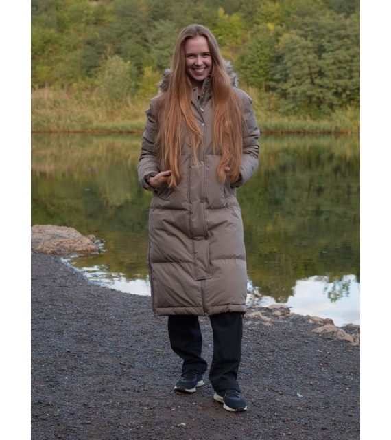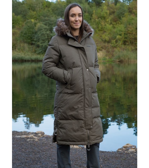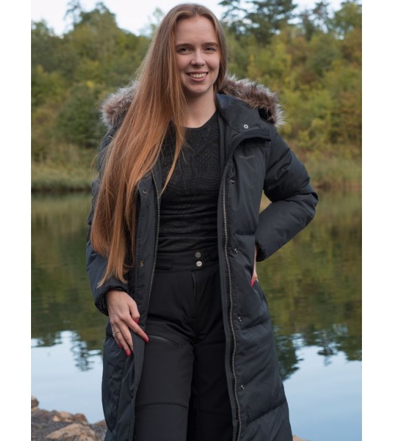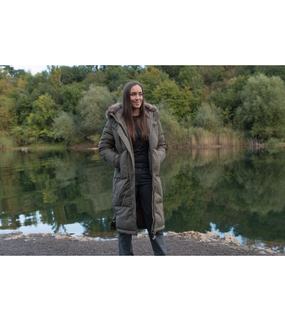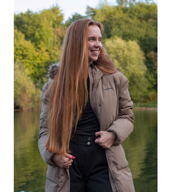 A warm women’s coat with a duck feather filling and fur trim for everyday wear around town as well as for outdoor activities.