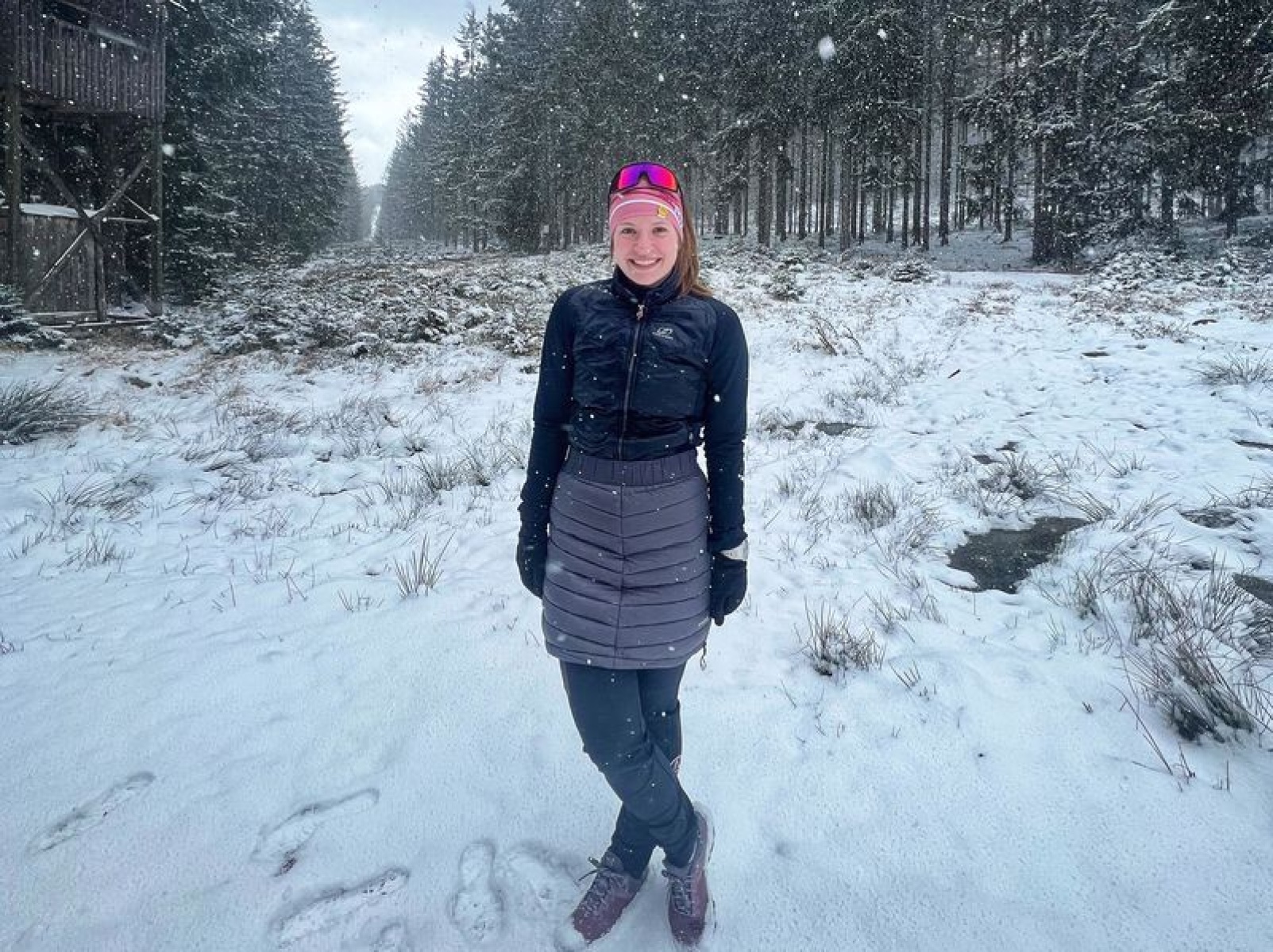 A chic sports skirt with a warm filling of duck feathers for cross-country skiing, skating, and winter walks.
