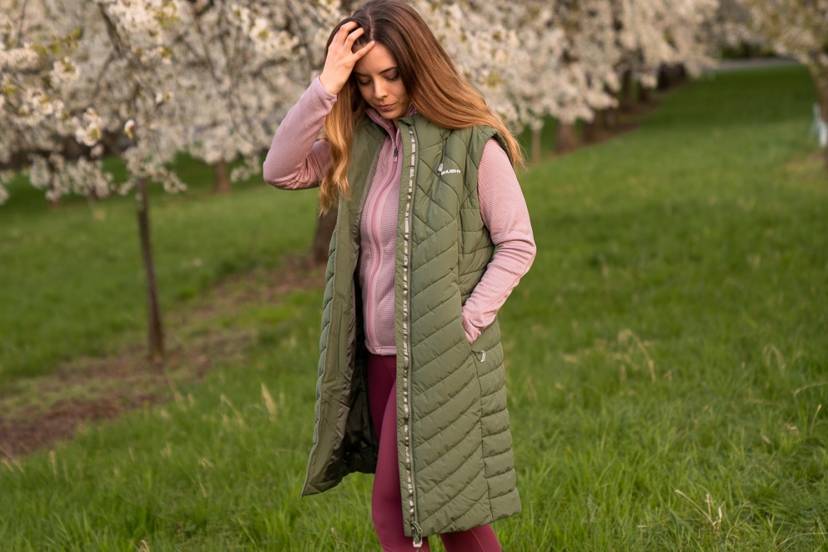 A long zip-up gilet suitable for hiking as well as to wear around town on colder days.
