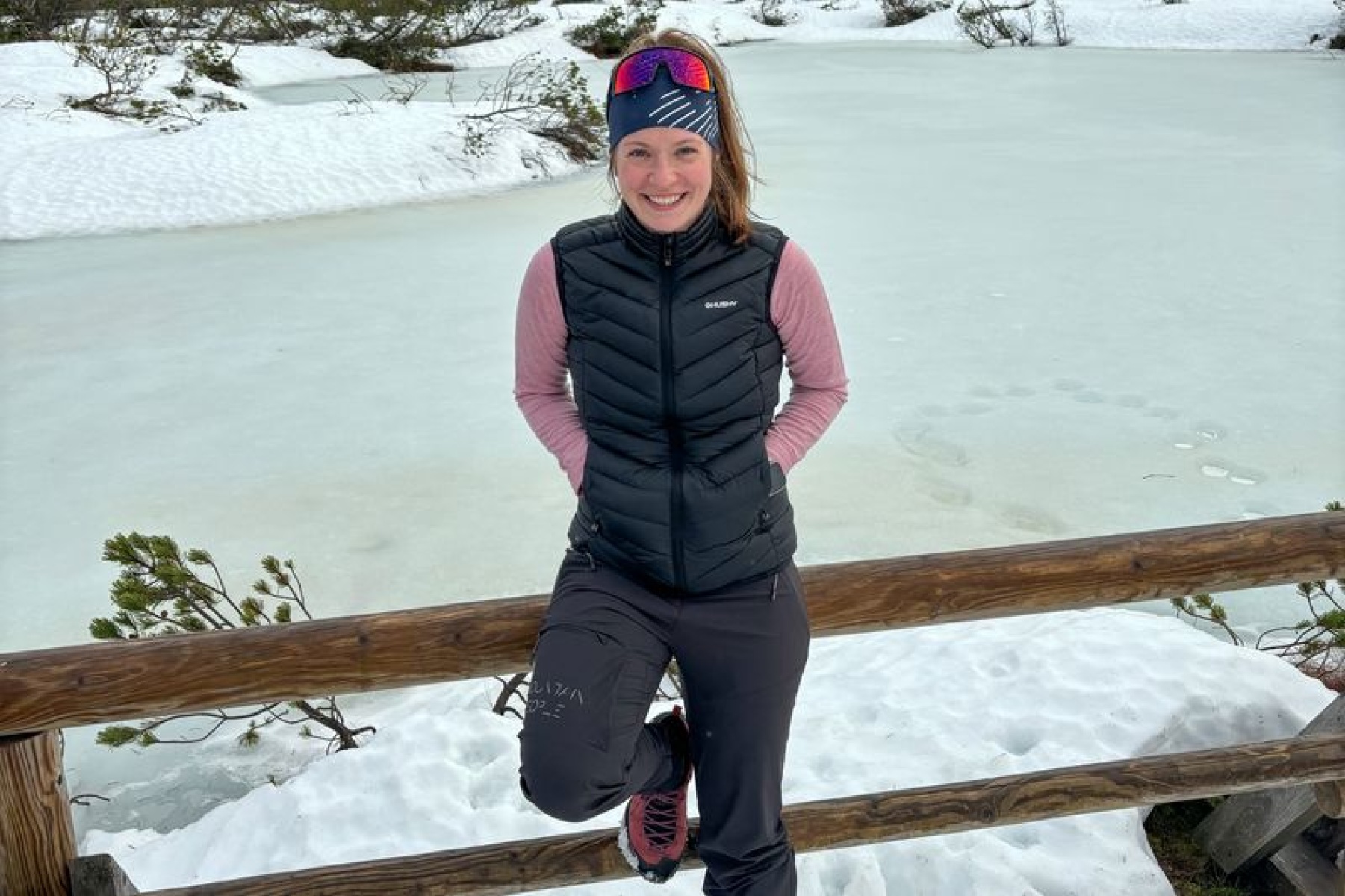 A light zip-up gilet suitable for hiking and other outdoor activities on colder days.