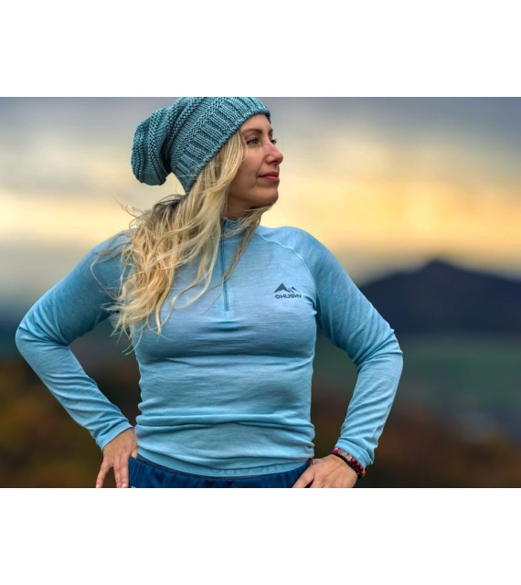 The women’s stand-up collar zip neck T-shirt from our Merino thermal underwear collection is a great functional garment for all conditions. You can wear it all year round for everyday wear and for various activities in the great outdoors.