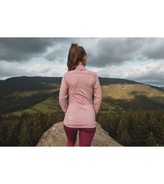 The women’s stand-up collar zip neck T-shirt from our Merino thermal underwear collection is a great functional garment for all conditions. You can wear it all year round for everyday wear and for various activities in the great outdoors.