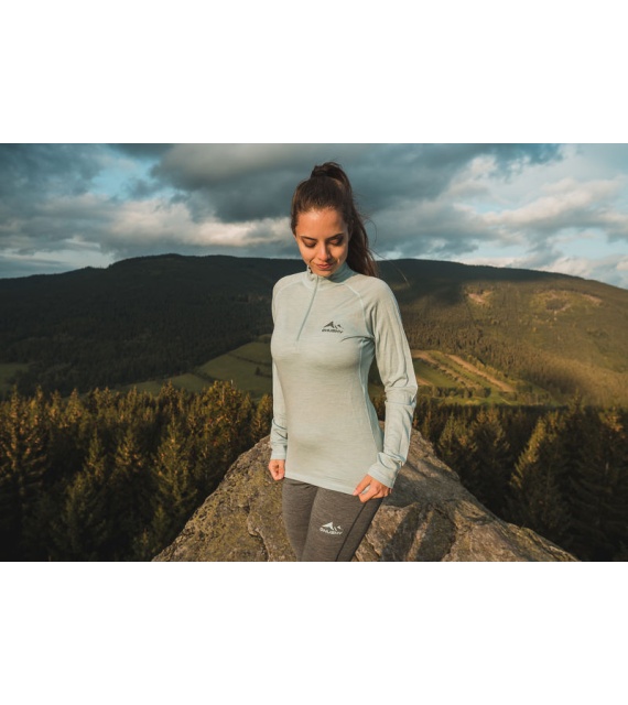 The women’s stand-up collar zip neck T-shirt from our Merino thermal underwear collection is a great functional garment for all conditions. You can wear it all year round for everyday wear and for various activities in the great outdoors.