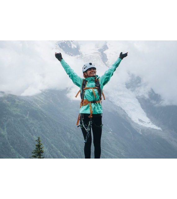 A multifunctional women’s hooded outdoor jacket for year-round use, both around town and for hiking.