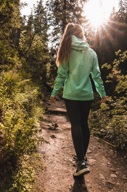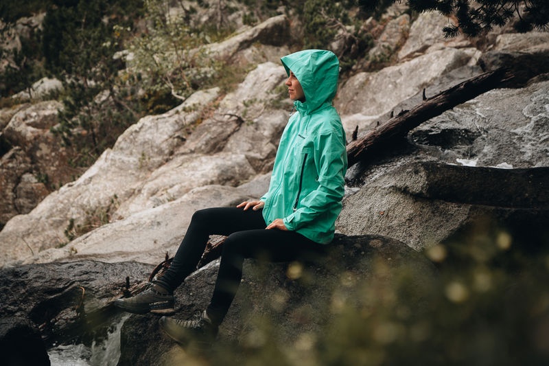 A multifunctional women’s hooded outdoor jacket for year-round use, both around town and for hiking.