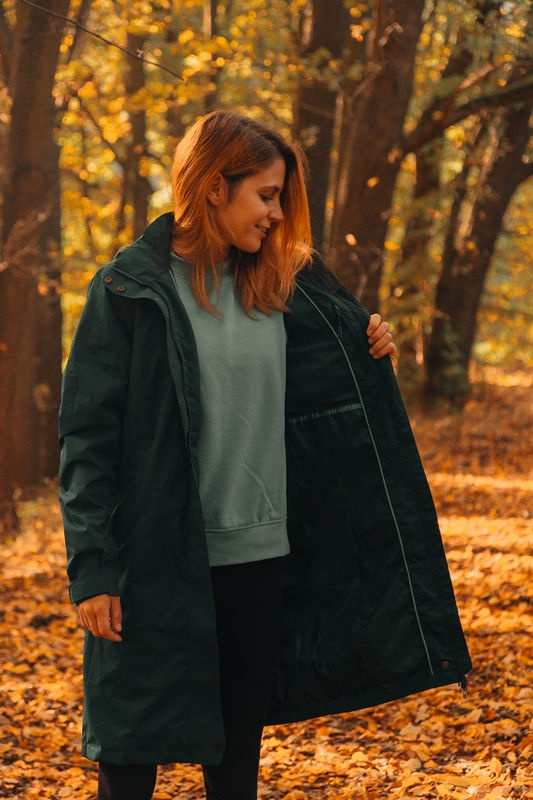 A must-have for every outdoor lover who wants to be warm and chic at the same time. Versatile waterproof women’s coat Nut L with a hood is cut for comfortable wear in the city and country, but also in demanding conditions. The high water column rating combined with high quality DWR treatment gives you great protection against wind and rain.