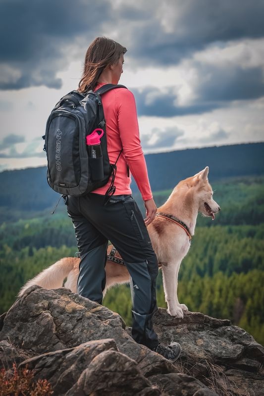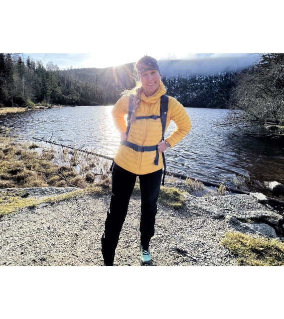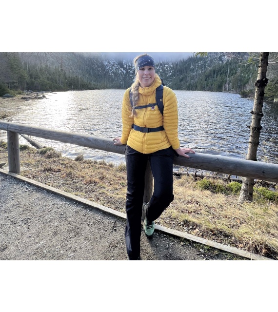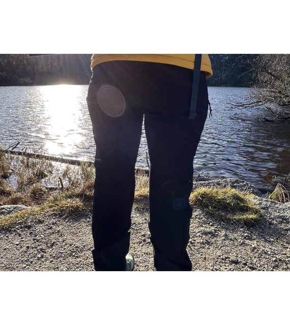 Wear the thick and durable women’s Krony L outdoor trousers, made of technical fabric, for hiking in demanding conditions. Breathable material and a sophisticated cut allow you to move comfortably even during all-day wear. A 20,000 water column Huskytech membrane is used on the exposed parts of the pants for waterproofing, combined with a quality DWR treatment to keep you warm and dry.