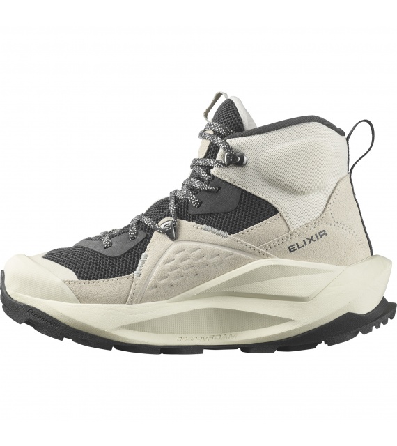 Women's premium ELIXIR MID GORE-TEX footwear by Salomon is designed to take you as far as you want to go. Thanks to soft and balanced cushioning, it provides comfort and stability even on challenging terrain. It is equipped with a waterproof Gore-Tex membrane, so even adverse weather won't surprise you, and your feet will stay dry and safe.
