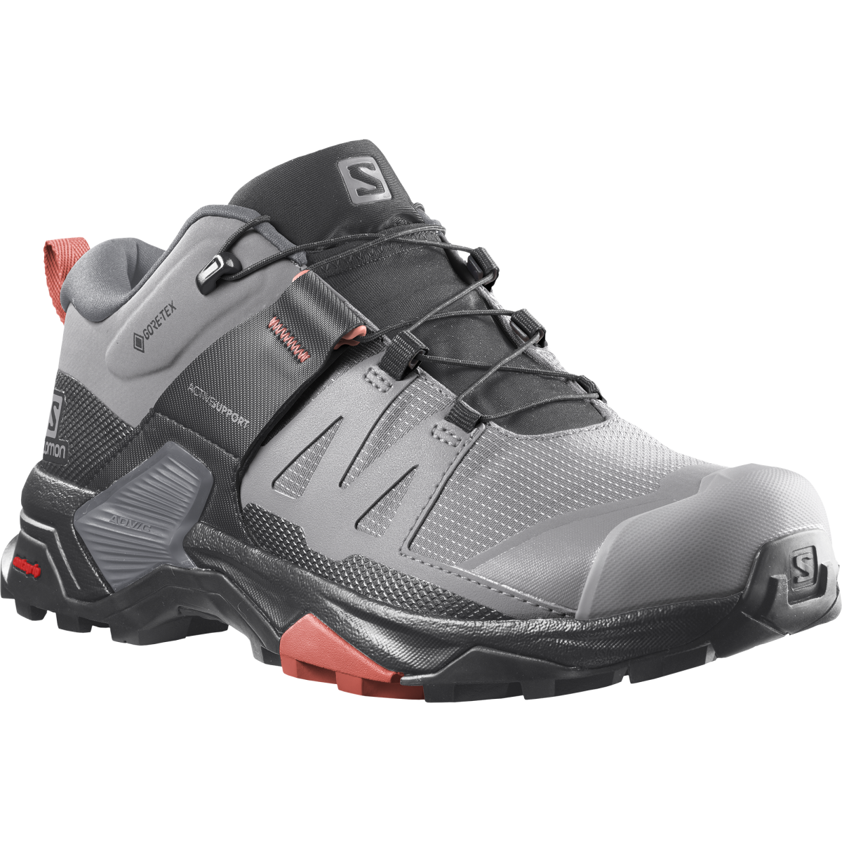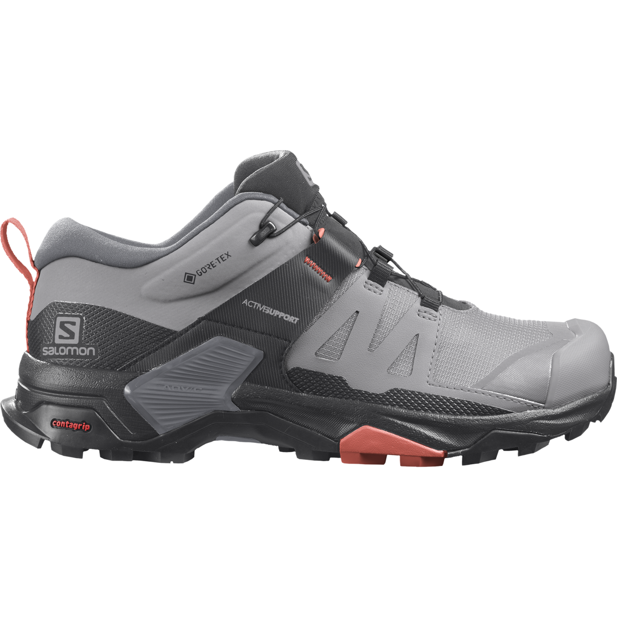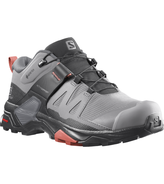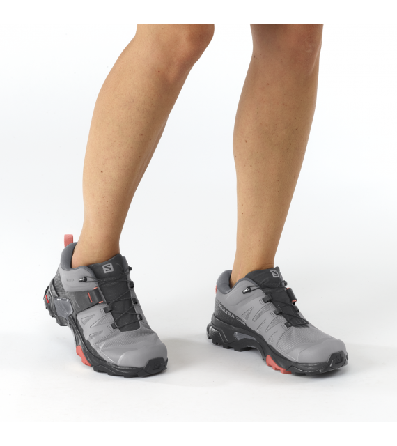 Women's outdoor footwear X Ultra 4 GTX W by Salomon leaves nothing to chance. It fully adapts to the morphology of your foot, protecting your joints and providing optimal stability without restricting movement. All this is supported by waterproof GORE-TEX protection and a high-grip sole even on wet and slippery terrain, which you will especially appreciate during descents. Don't hesitate and take them with you on your hike!