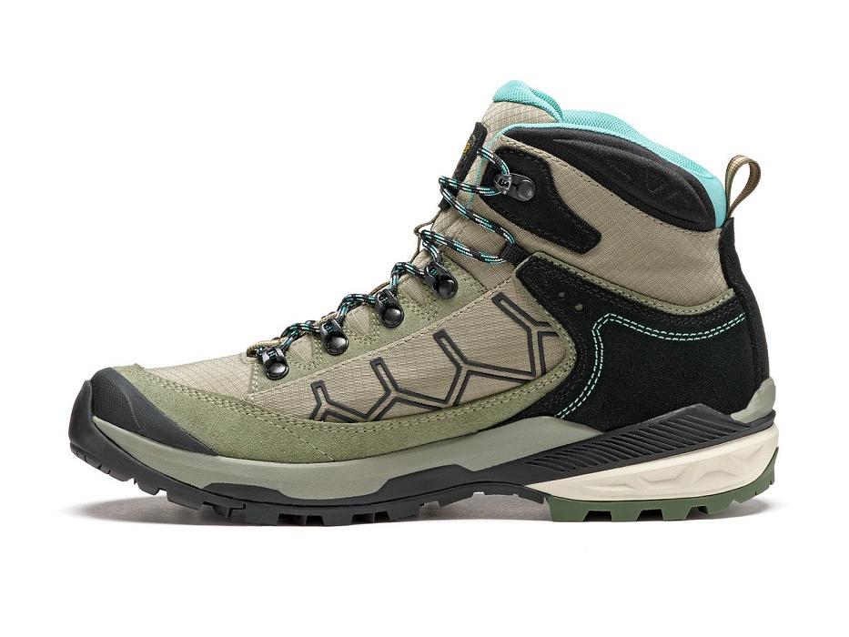 A blazing sun overhead, varied terrain underfoot, and a dream destination on the horizon – a mountain hut with a refreshing drink, a summit with a cool breeze, a river with lively water. These Asolo Falcon boots will guide you on less demanding Alpine treks and Czech hills. The upper, thanks to the combination of leather and nylon, is pleasantly breathable yet still highly durable. Furthermore, it's secured from below by a Gore-Tex® membrane that keeps your feet dry even when a storm turns the trail into a stream. In such terrain, full of wet rocks and sticky mud, the Vibram® sole will give you confidence. And the toe reinforcement will prevent your little toe from colliding with a stray rock.