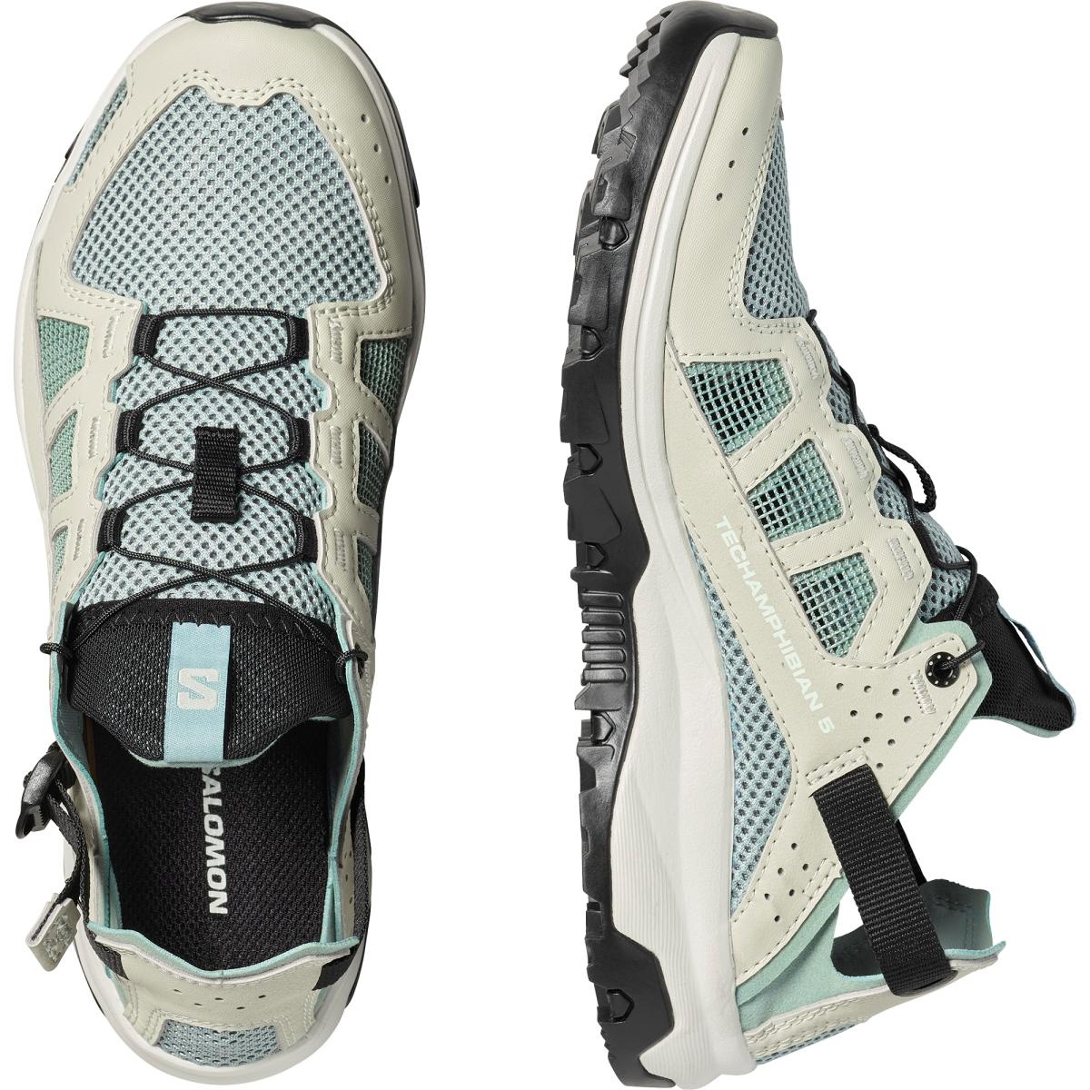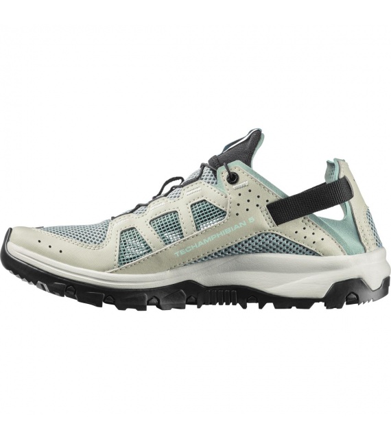 The TECHAMPHIBIAN 5 shoes are fully ready for wet and wild expeditions, with reinforced toe caps and a fully stitched construction to protect your feet, while the grippy sole ensures traction on slippery terrain. It features a collapsible heel for versatile and easy use, and quick-drying, breathable upper materials.