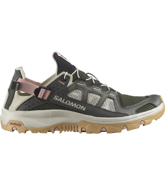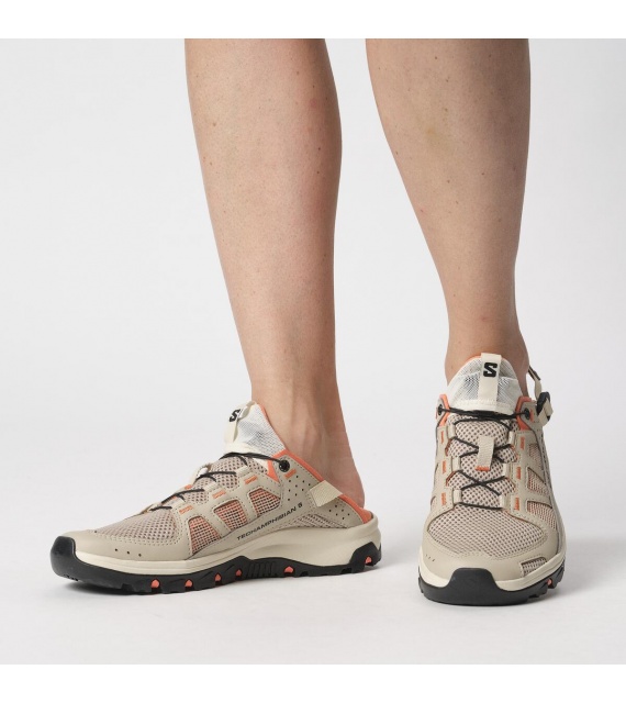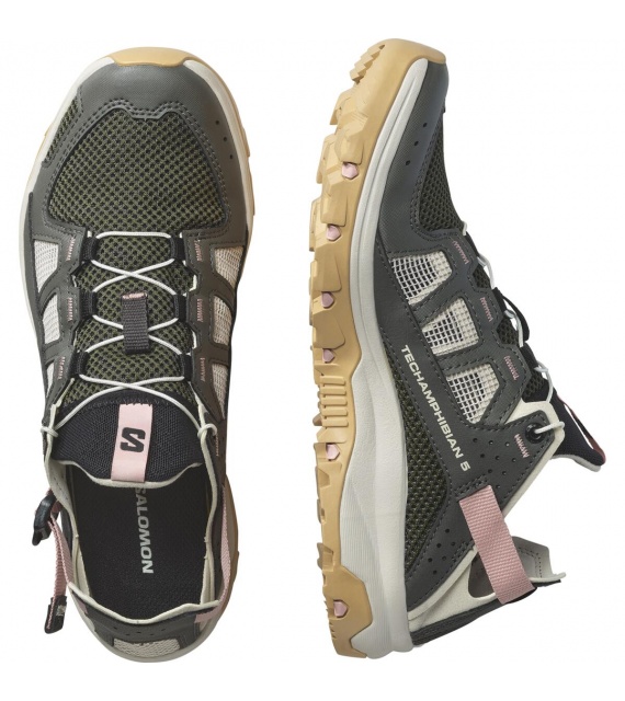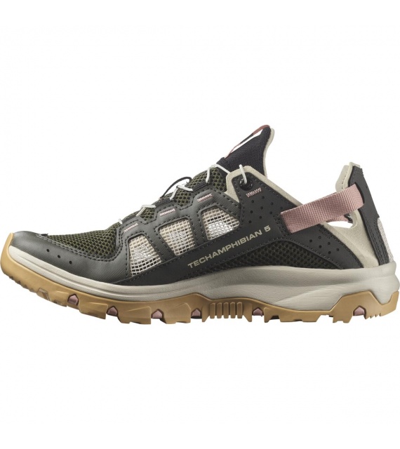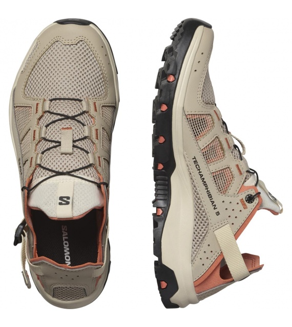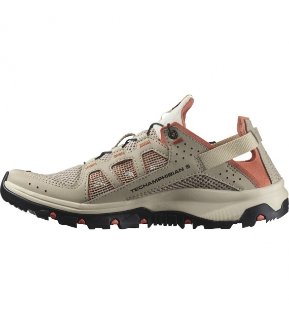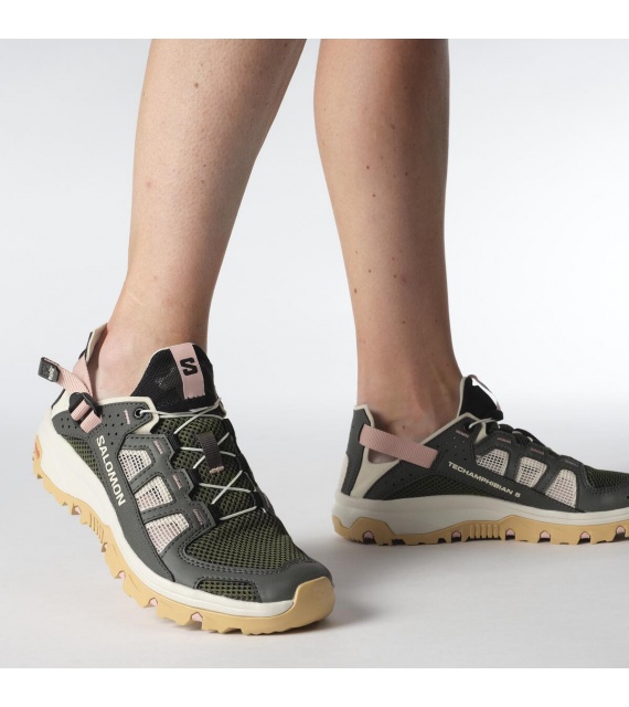 The TECHAMPHIBIAN 5 shoes are fully ready for wet and wild expeditions, with reinforced toe caps and a fully stitched construction to protect your feet, while the grippy sole ensures traction on slippery terrain. It features a collapsible heel for versatile and easy use, and quick-drying, breathable upper materials.