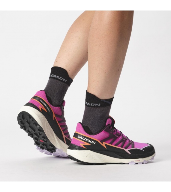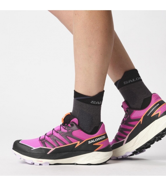 The THUNDERCROSS is a trail shoe for a dynamic, cushioned stride with exceptional grip and a precise fit. It features aggressive 5mm lugs that can handle any terrain, no matter how tricky, technical, or simply unpleasant it may be. Developed in the French Alps, tested and proven on all types of trails, from hilly terrain to rocky slopes or slippery singletracks.