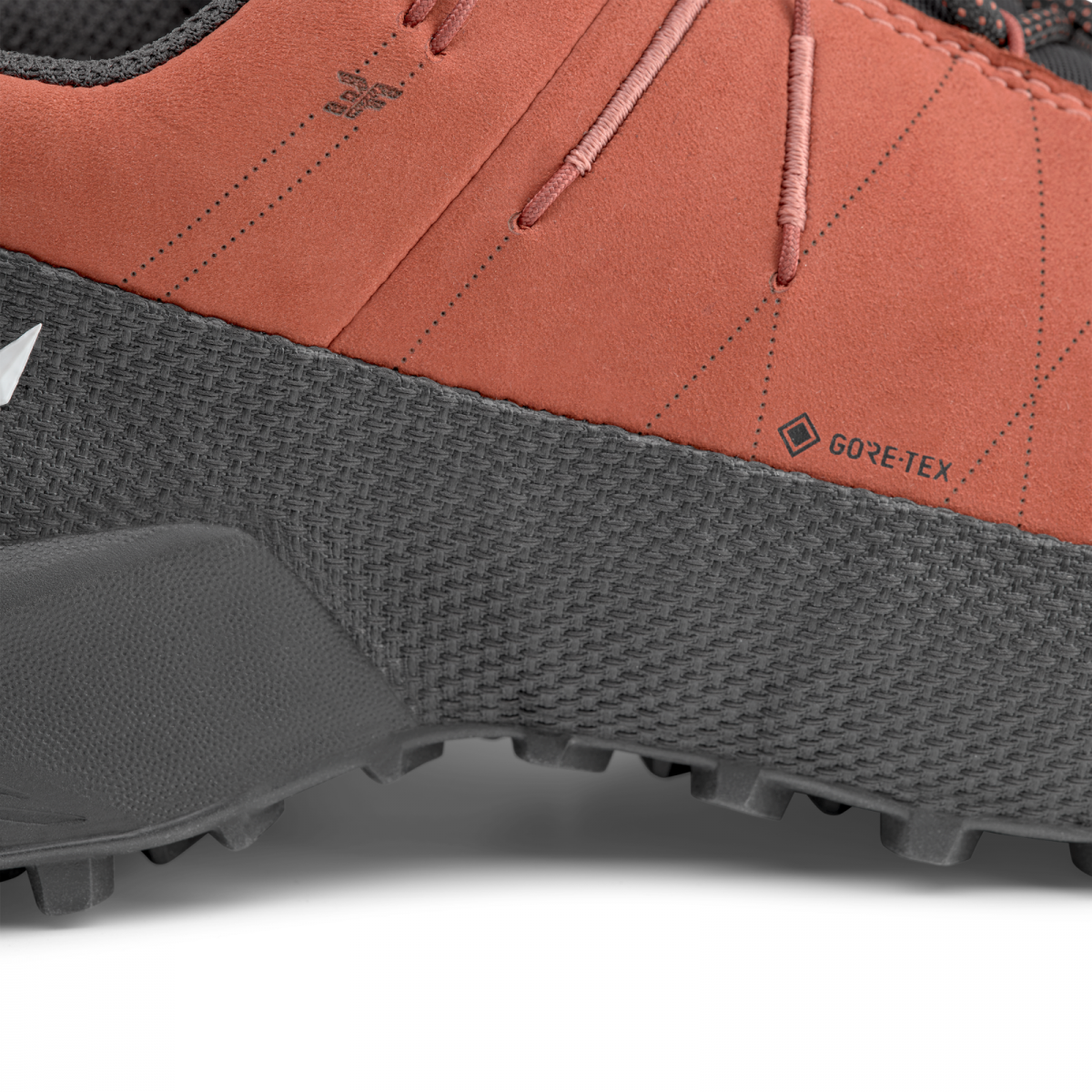 Developed in the Dolomites for climbing performance and technical approaches. The Wildfire Leather 2, with its sleek, high-quality 1.6mm nubuck upper and 360° PU rand, offers an optimal combination of flexible fit, stability, and support. Inside, a 100% PFAS-free GORE-TEX® membrane ensures waterproofness and breathability. The sole features a climbing zone and grippy POMOCA® rubber for good traction on both dry and wet surfaces. The shoe's volume can be customized with the adaptable CFF footbed to adjust the shoe's width, and the climbing lacing allows for a precise fit.
