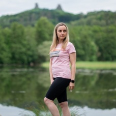 Lightweight and breathable sports trousers intended for aerobic sports and physical activities on warm days.