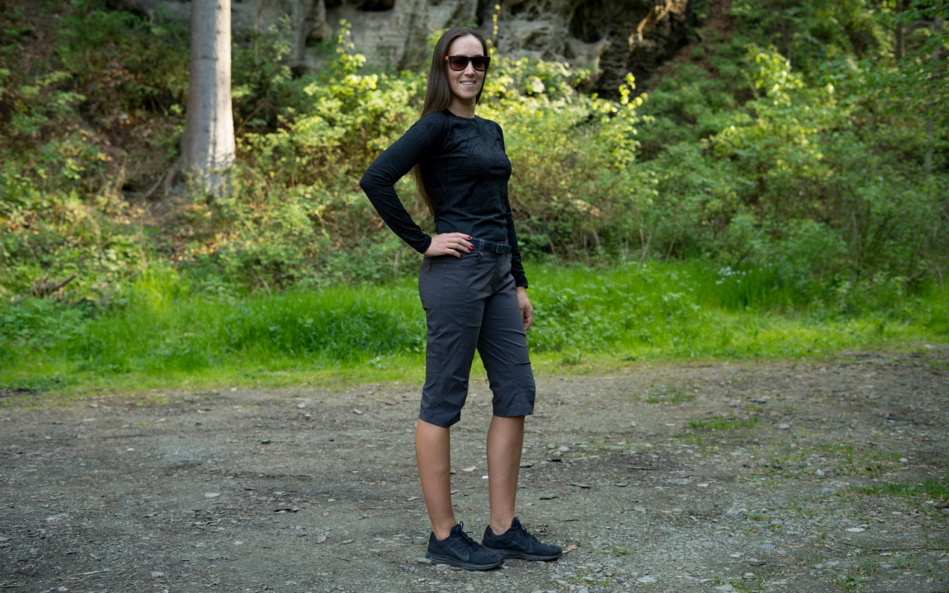 Light women’s ¾ sports trousers for everyday wear, hiking, or physical activities on warm days.