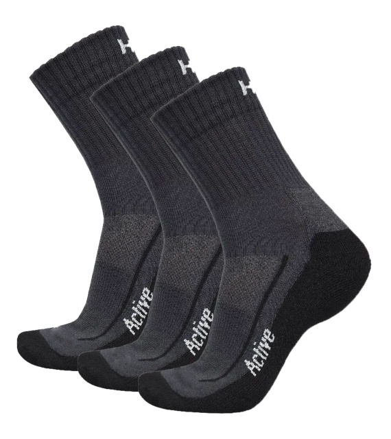 Active are thin socks reaching above the ankle. They have a reinforced foot area for soft footfall and a reinforced instep area against slipping. They are made of a blend of fibres that ensures comfort during active movement as well as during undemanding activities.