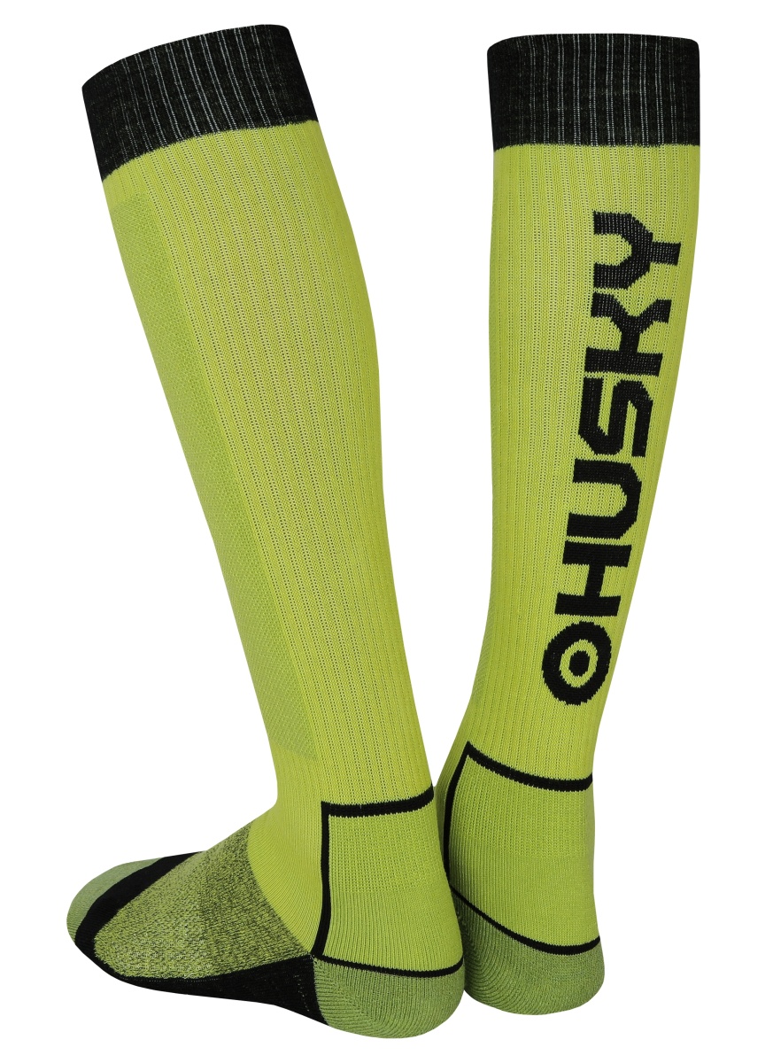 Warm, comfortable, knee-high socks made from high-quality material containing merino wool, for downhill skiing and snowboarding.