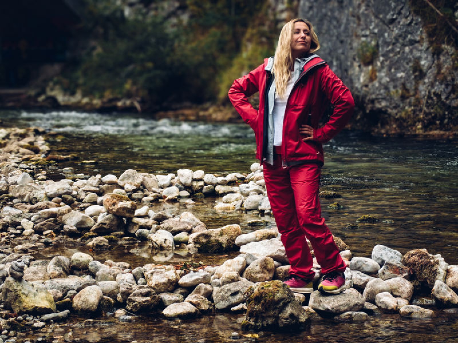 • The DWR water repellent treatment of the outer layer of the garment material prevents moisture from seeping through, and water immediately runs off the surface in the form of beads.
