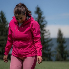 A women’s multipurpose jacket for year-round use during all kinds of outdoor activities, such as cycling, running, cross-country skiing, and hiking.