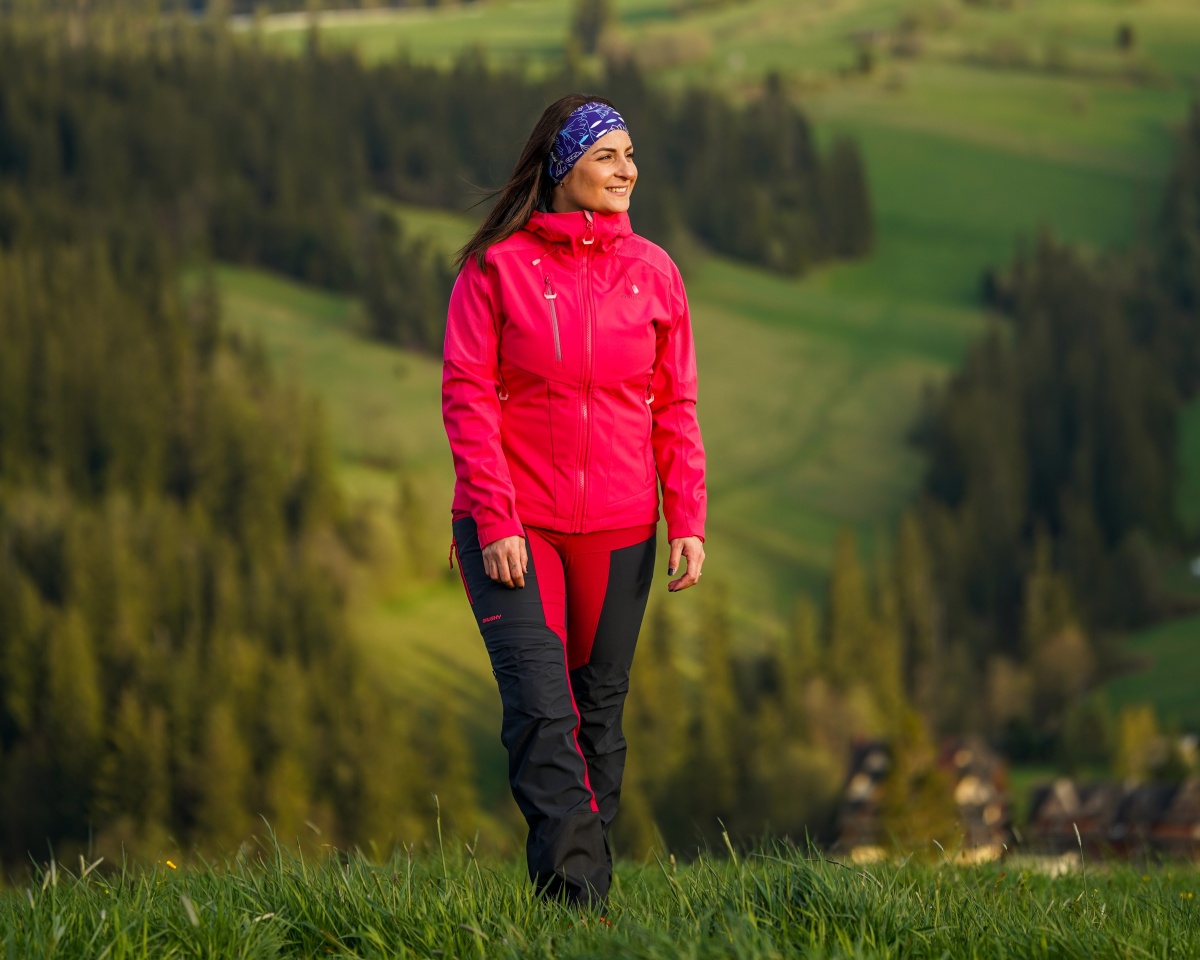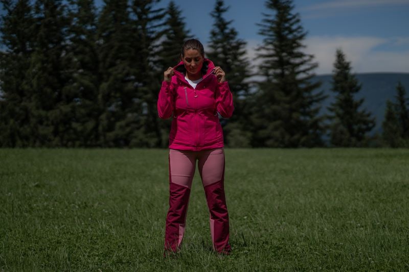 A women’s non-insulated softshell jacket for various outdoor activities.