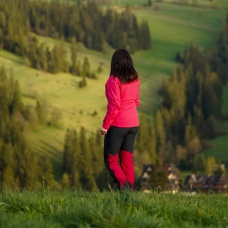 A women’s multipurpose jacket for year-round use during all kinds of outdoor activities, such as cycling, running, cross-country skiing, and hiking.