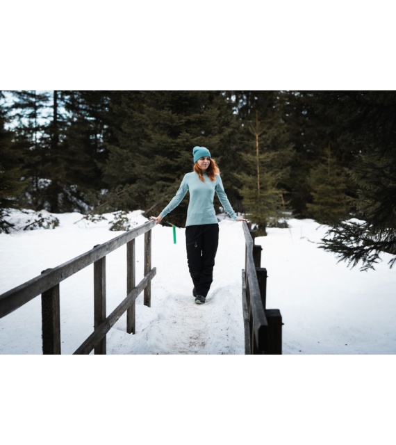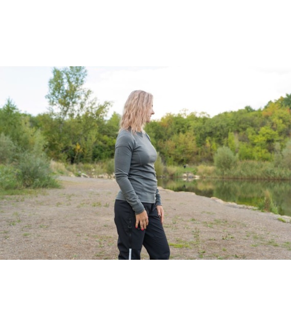 A women’s sweatshirt made of soft material containing merino wool, suitable for all outdoor activities from autumn through winter.