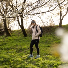 A light-fill reversible women’s jacket designed for the city as well as trips outdoors.