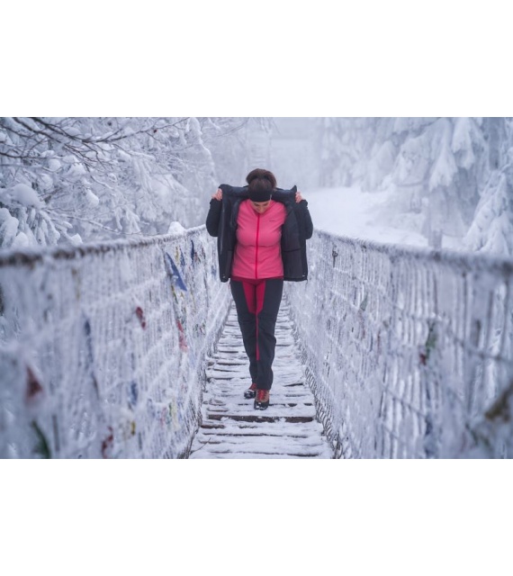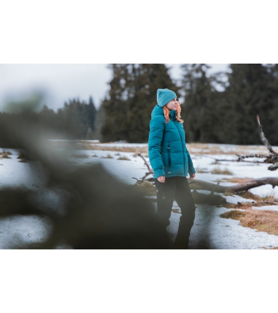 A fantastic warm garment with an extended back length and lots of other features to make the cold more bearable. Winter insulated women's Norel L hooded jacket is equipped with a waterproof Husky Tech membrane. For casual everyday wear in the city or for trips outdoors.