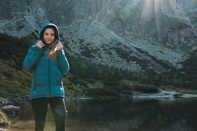 • The DWR water repellent treatment of the outer layer of the garment prevents moisture from seeping through; water beads up and immediately runs off the surface.