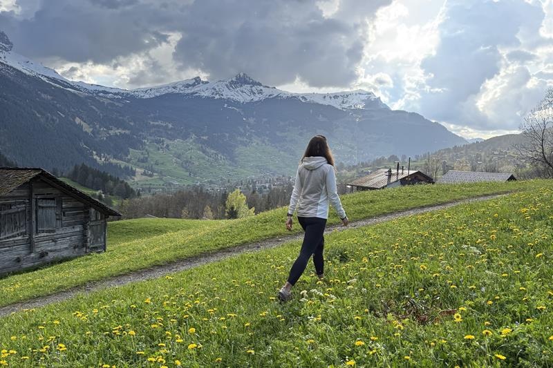 A breathable women’s sweatshirt made of elastic knit for outdoor activities, hiking, sports and casual wear around town.