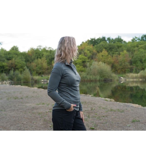 women’s zip neck sweatshirt in a merino wool and polyester blend is a great functional piece for all conditions. You can use it for everyday wear in the city and activities in the great outdoors.