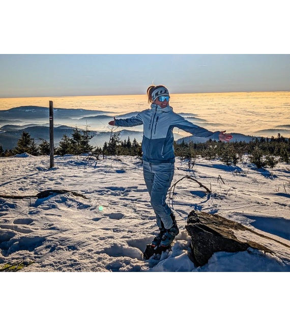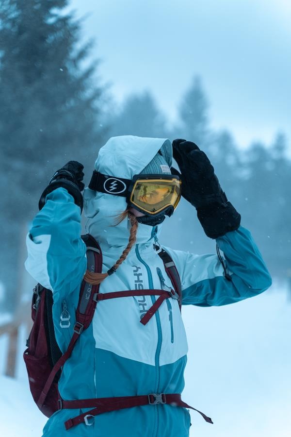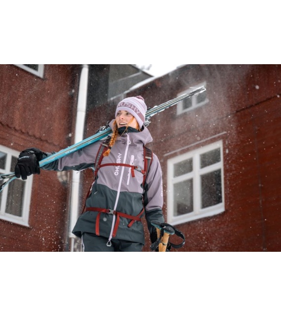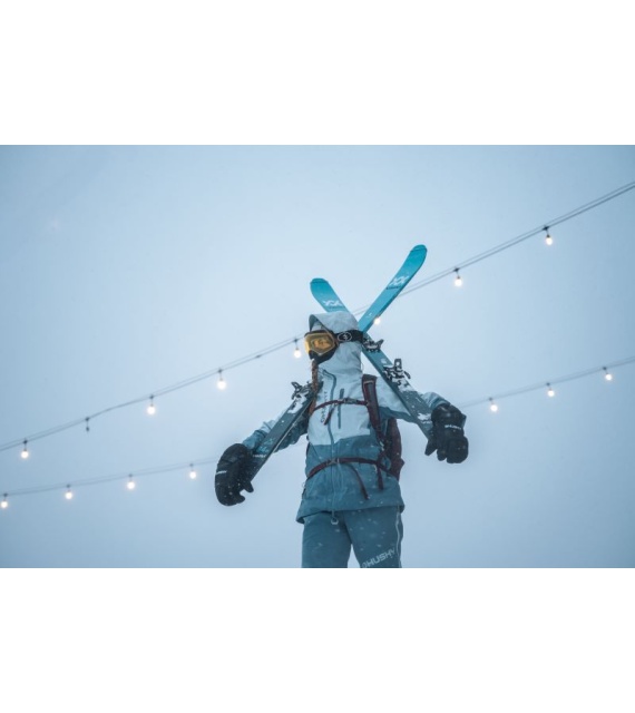 A hardshell jacket for women suitable for ski mountaineering, winter trekking and other sports activities.