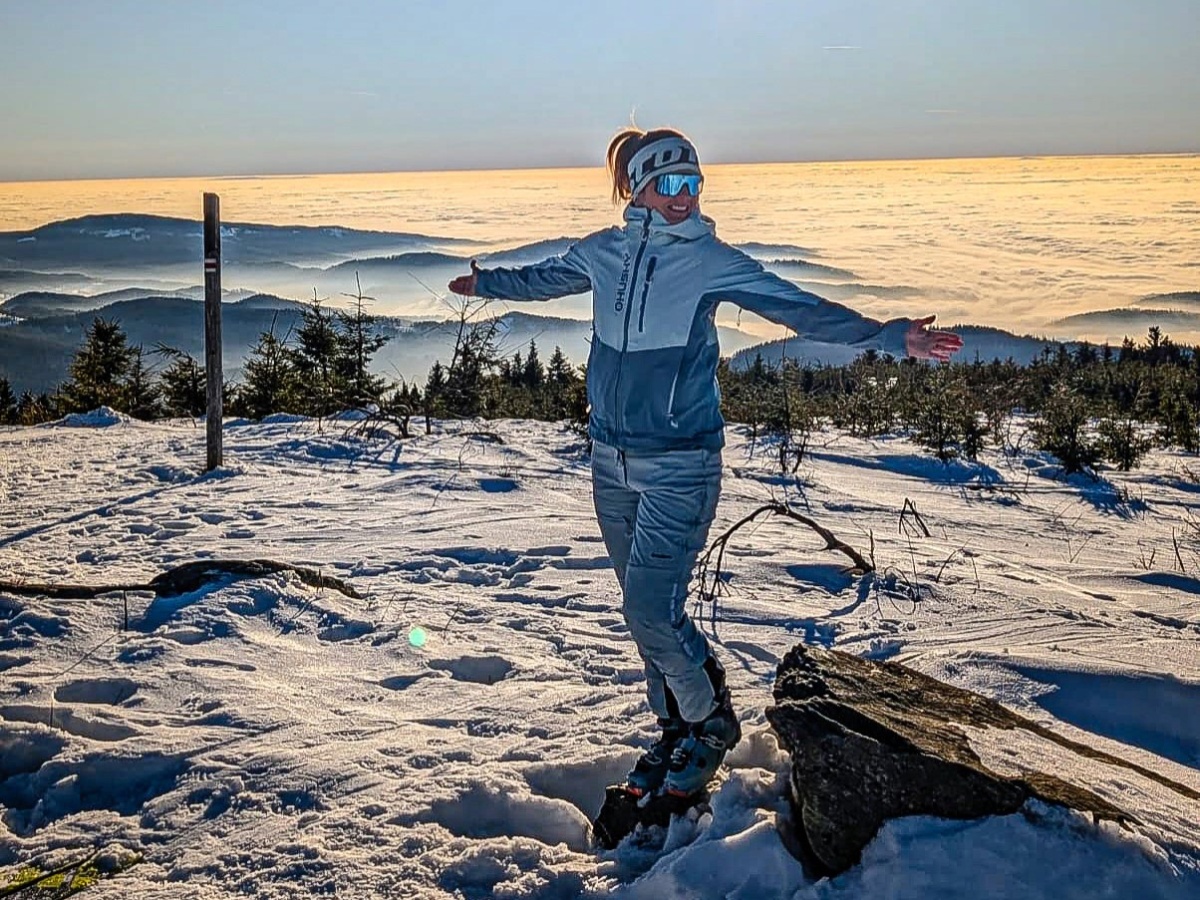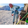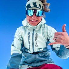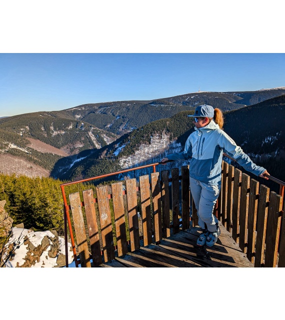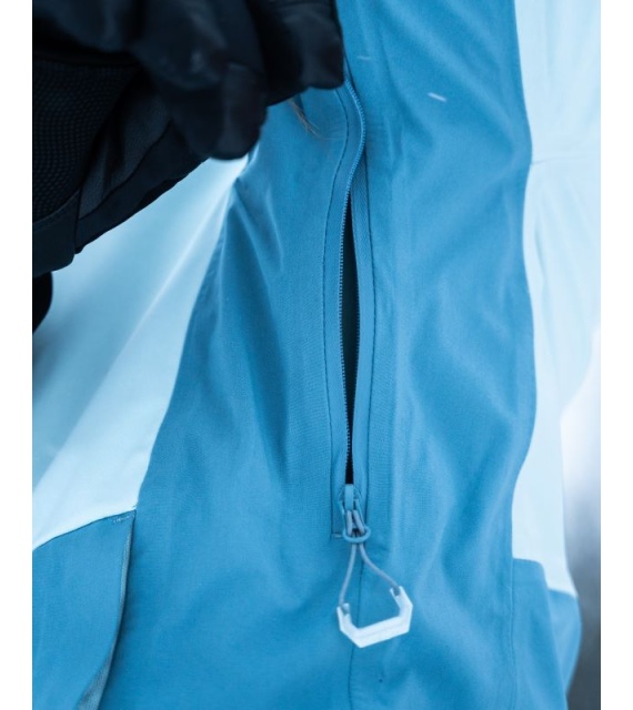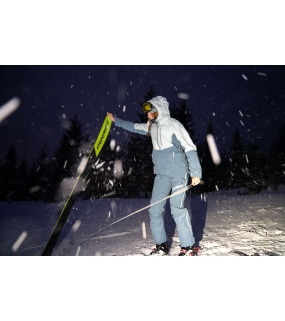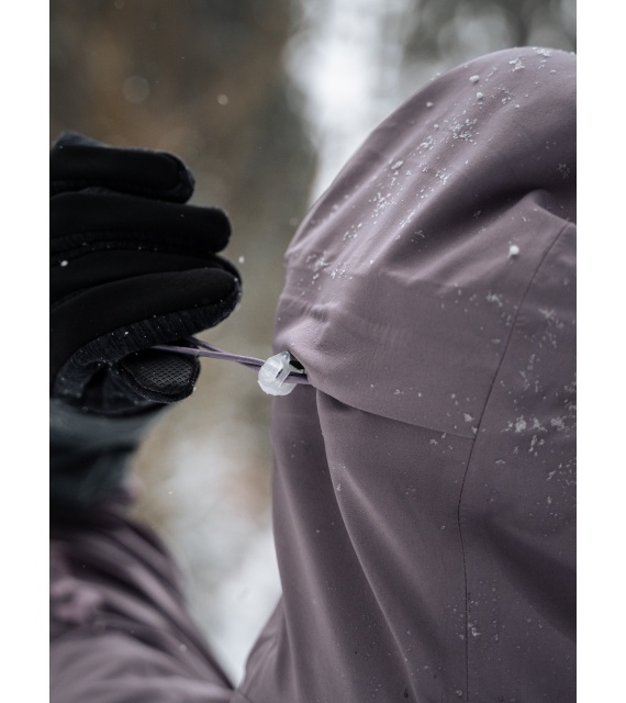 A hardshell jacket for women suitable for ski mountaineering, winter trekking and other sports activities.