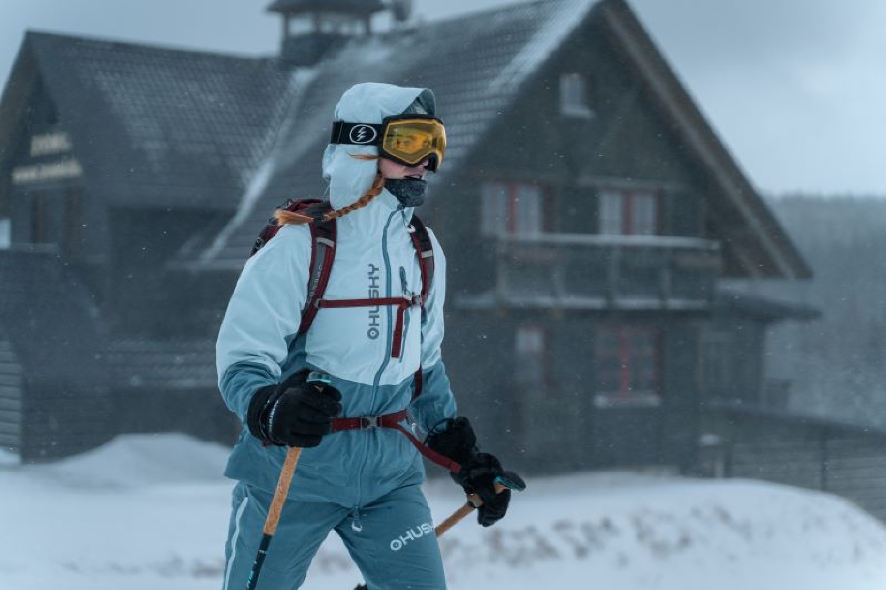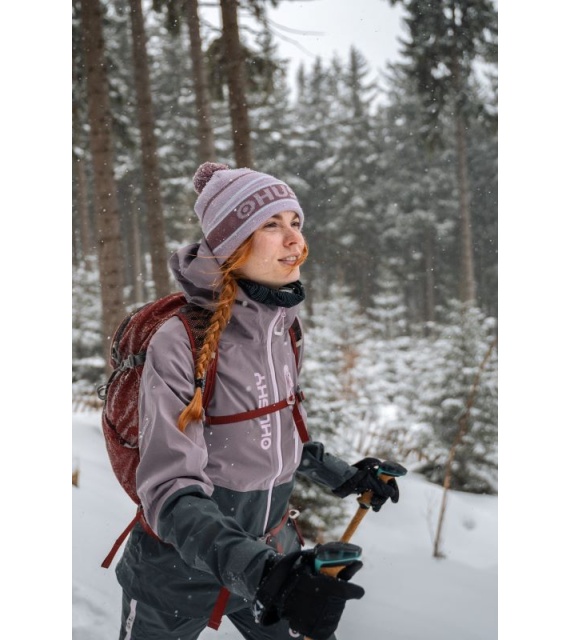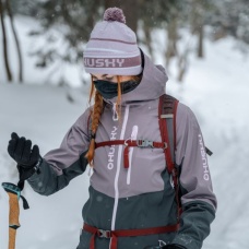 A hardshell jacket for women suitable for ski mountaineering, winter trekking and other sports activities.
